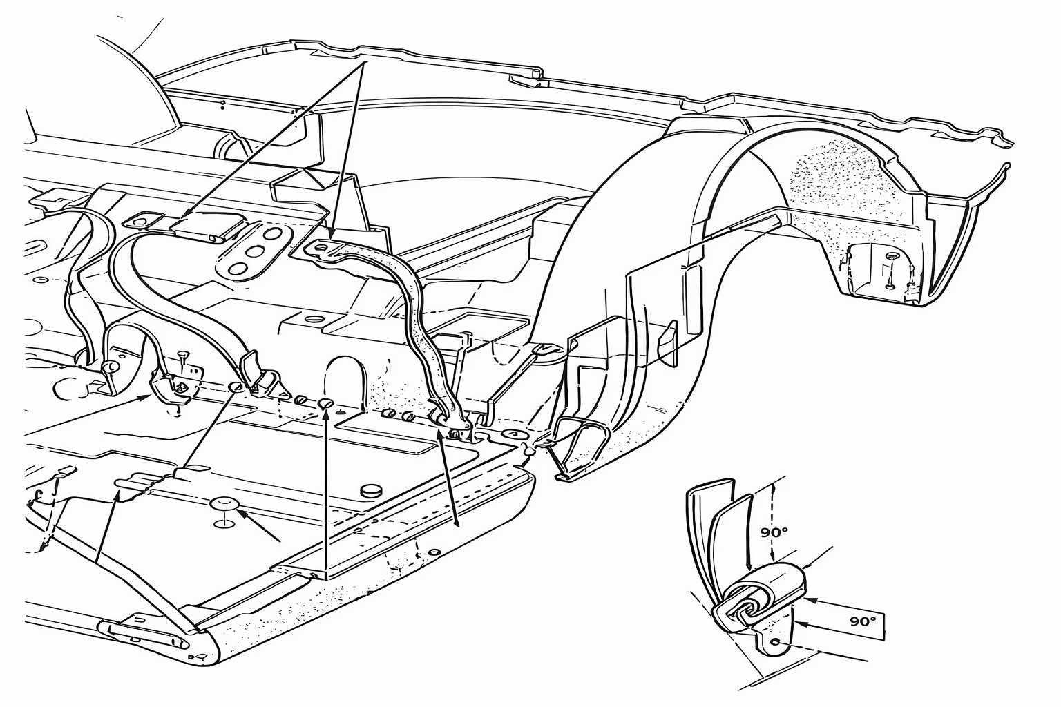 1958-1962 Corvettle Lap Seat Belt Installation Diagram