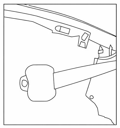 - Take the webbing and using the opening on the web guide, slide the belt thru the top of the web guide as seen in the illustrations below. Once the belt is thru the loop, pull the belt thru till you have a sufficient length to attach the belt to the original mount. Attach the belt to the original mount and mount the belt latch end to the original mount using the bolt and nut. Pull the tongue down to latch and make sure that the webbing is not being twisted along the upper or lower restraint.