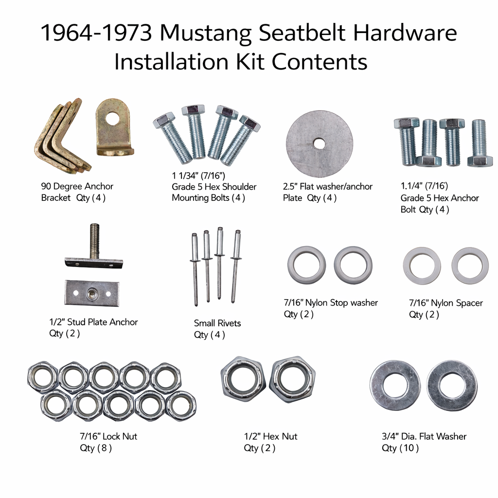 The hardware included in this kit has been designed to work for multiple years of Mustangs. If your vehicle has existing anchor mounting points installed you may not need all of the provided hardware.