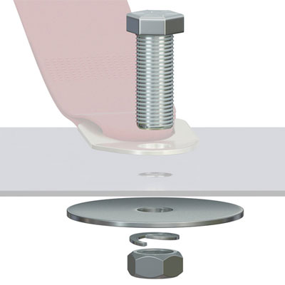 - Mounting hardware to the floor should always have metal-to-metal contact. You should avoid carpet, plastic or any other material between the fastener components and the floor which could tend to loosen over time.