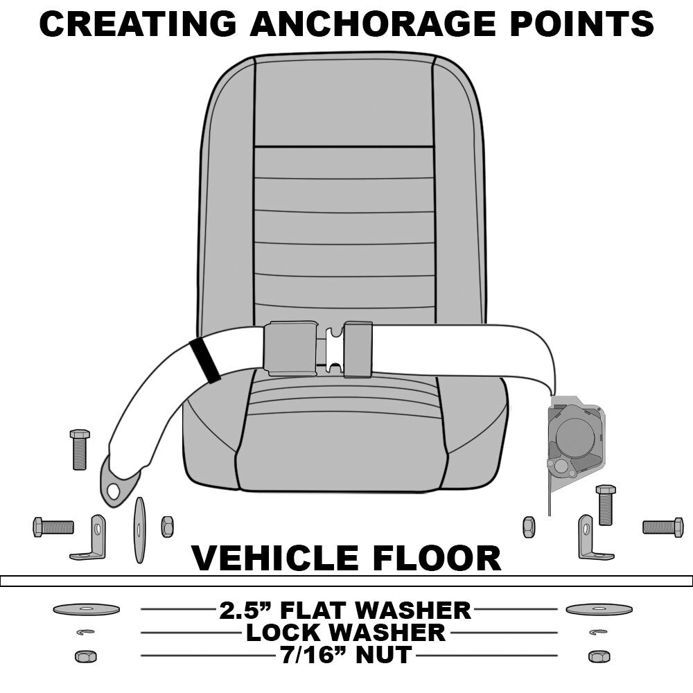 - Anchor points for belts must meet the strength load requirements of FMVSS 210. When replacing belts, always use the anchorages provided by the vehicle, or seat manufacturer.
