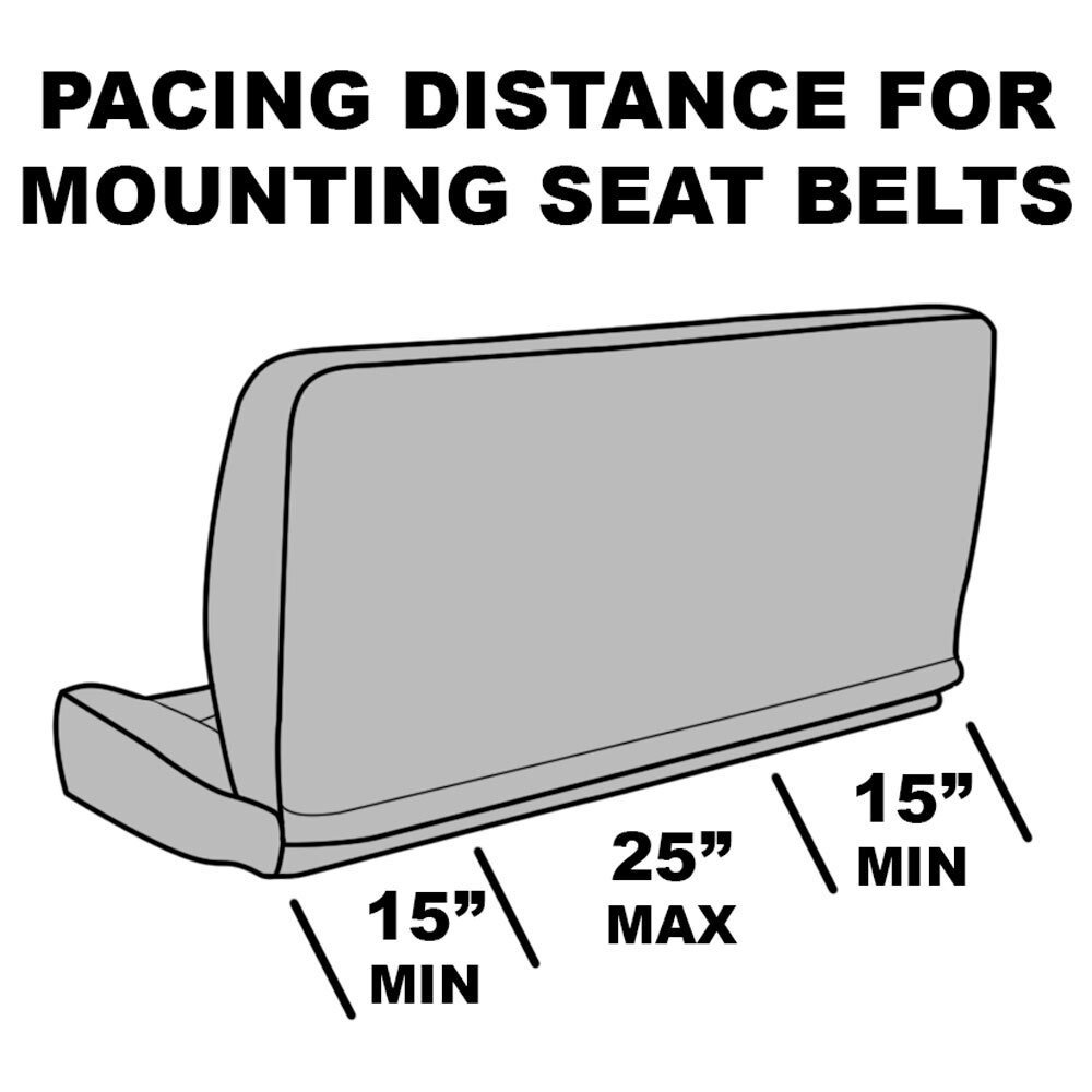 - Space the attachment points 15"-25" apart so that the lap belt forms a "U" shaped loop when in use. Never attach both end of the lap belt to the same anchor point.