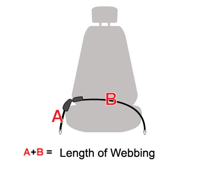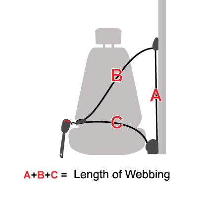 - You will want to measure for 2 lengths: Length of (A) buckle side, and length of (B1 + B2 + B3) retractable lap & shoulder side.